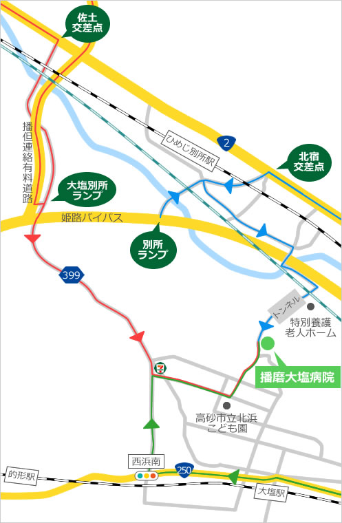「曽根駅」または「ひめじ別所駅」からタクシー5分