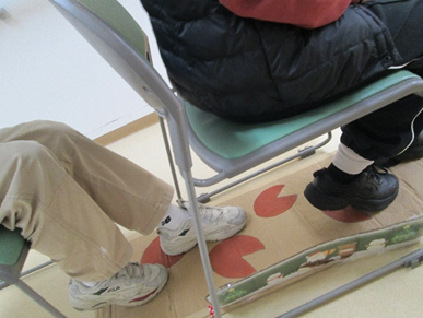 全員参加の「みんなで協力ウォーキングゲーム」は、ベルト仕様の段ボールを蹴って次の人へ送るゲームです。段ボールが詰まらないようにみんなで息を合わせてウォーキングを楽しみました。終わった後は達成感でみなさん笑顔でした。